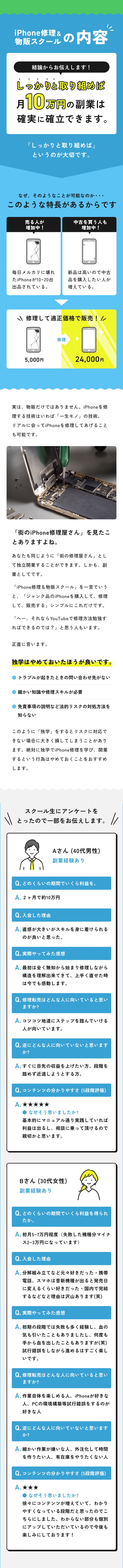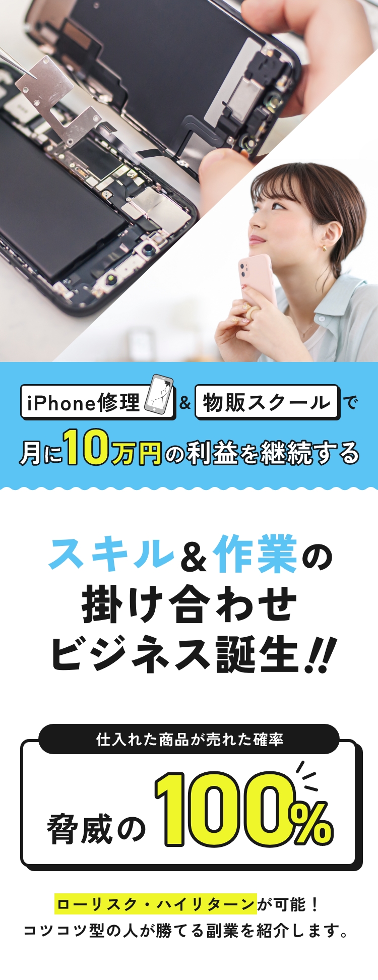 LINE特典を3つご用意、スクール受講生の感想動画、5分でわかるiPhone物販の流れを一気に解説、スクール入会案内動画